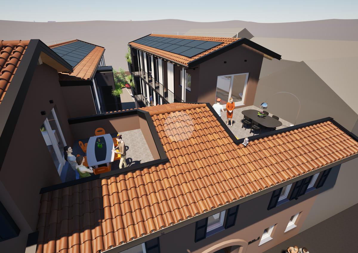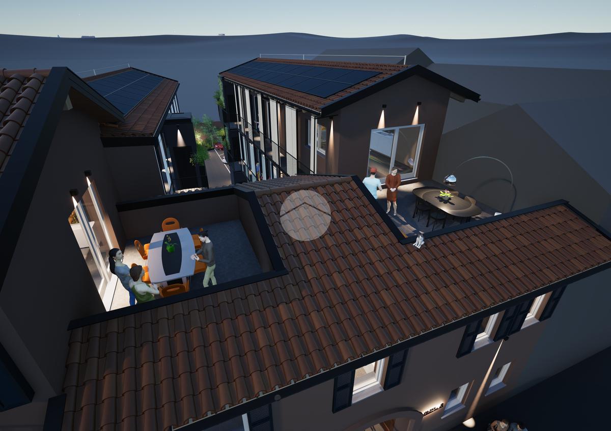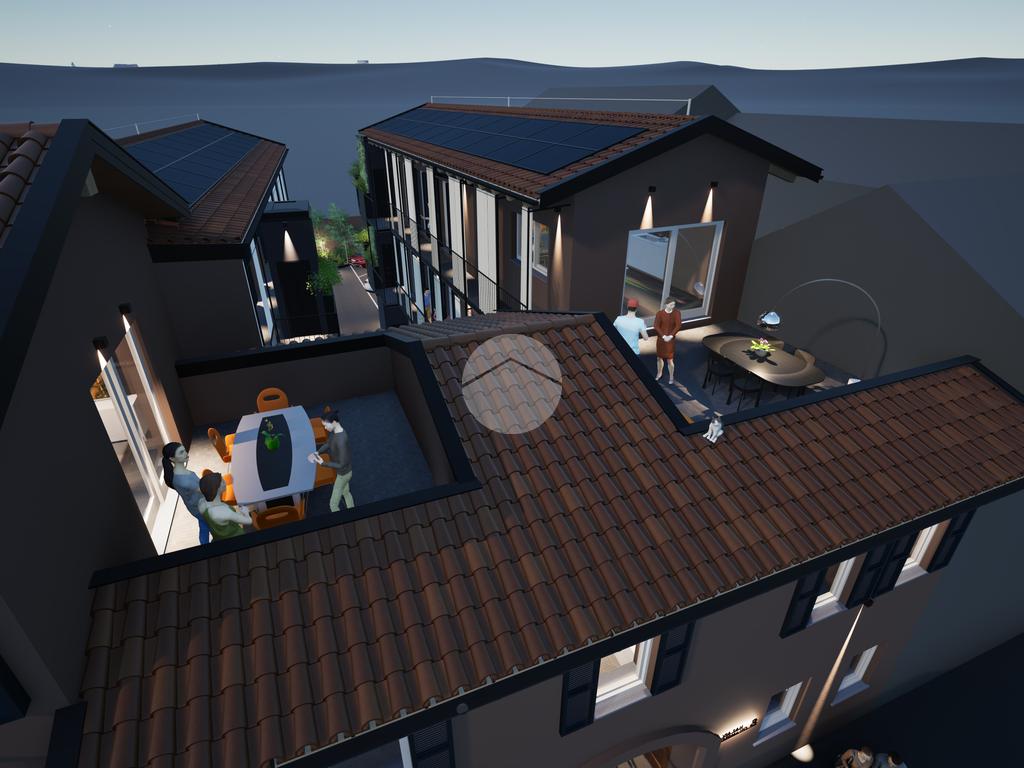 L'immobile sarà dotato di impianto di fotovoltaico da 4 Kw, con batterie di accumulo da 5 kw; i serramenti esterni saranno in pvc a taglio termico e le gelosie esterne in alluminio.