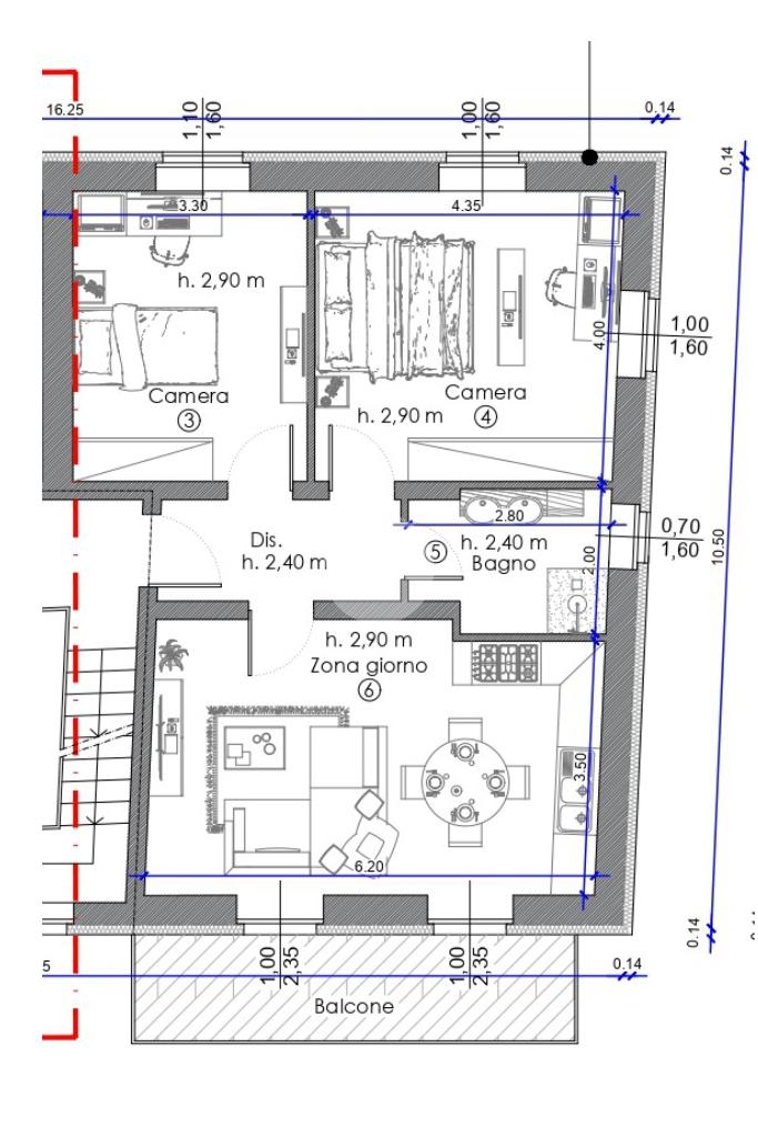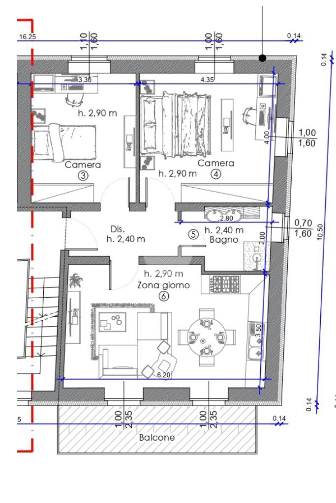 Completano il piano due camere da letto ed il bagno finestrato con doccia.