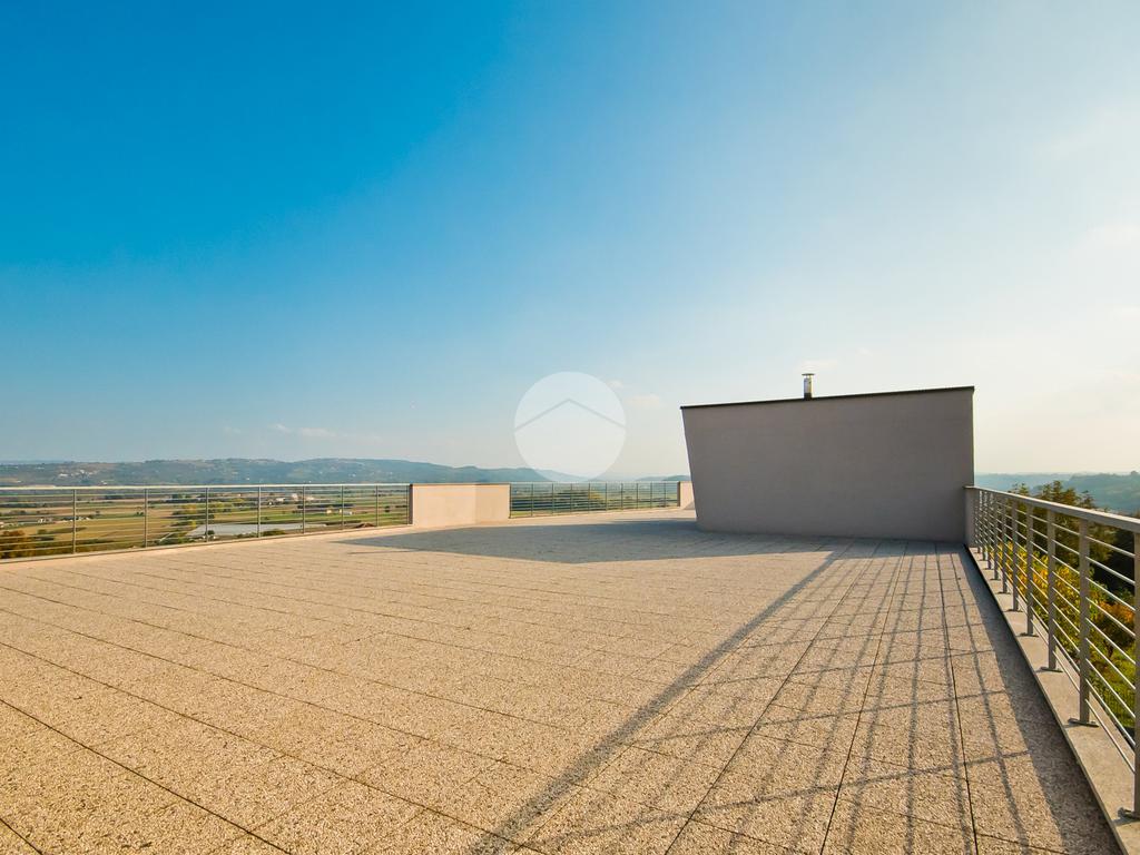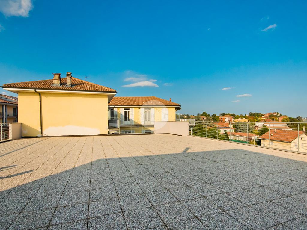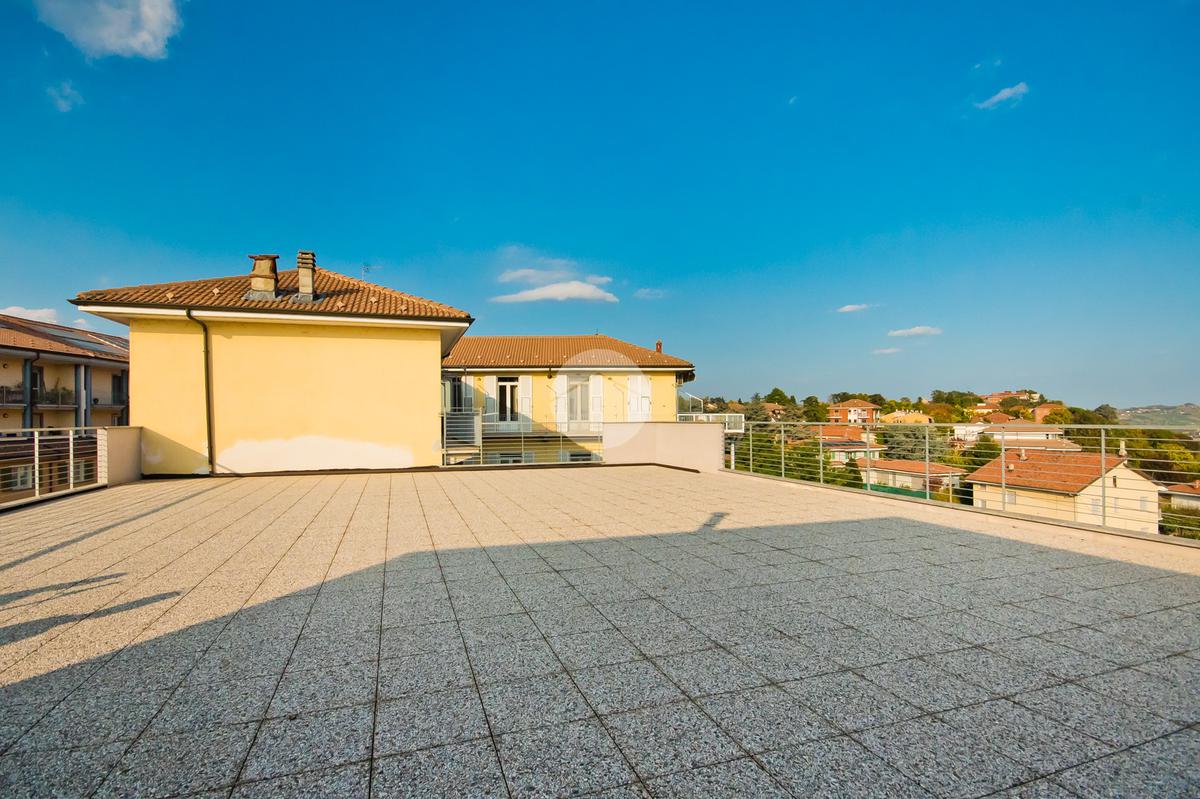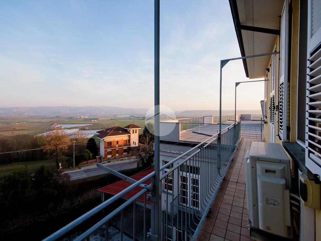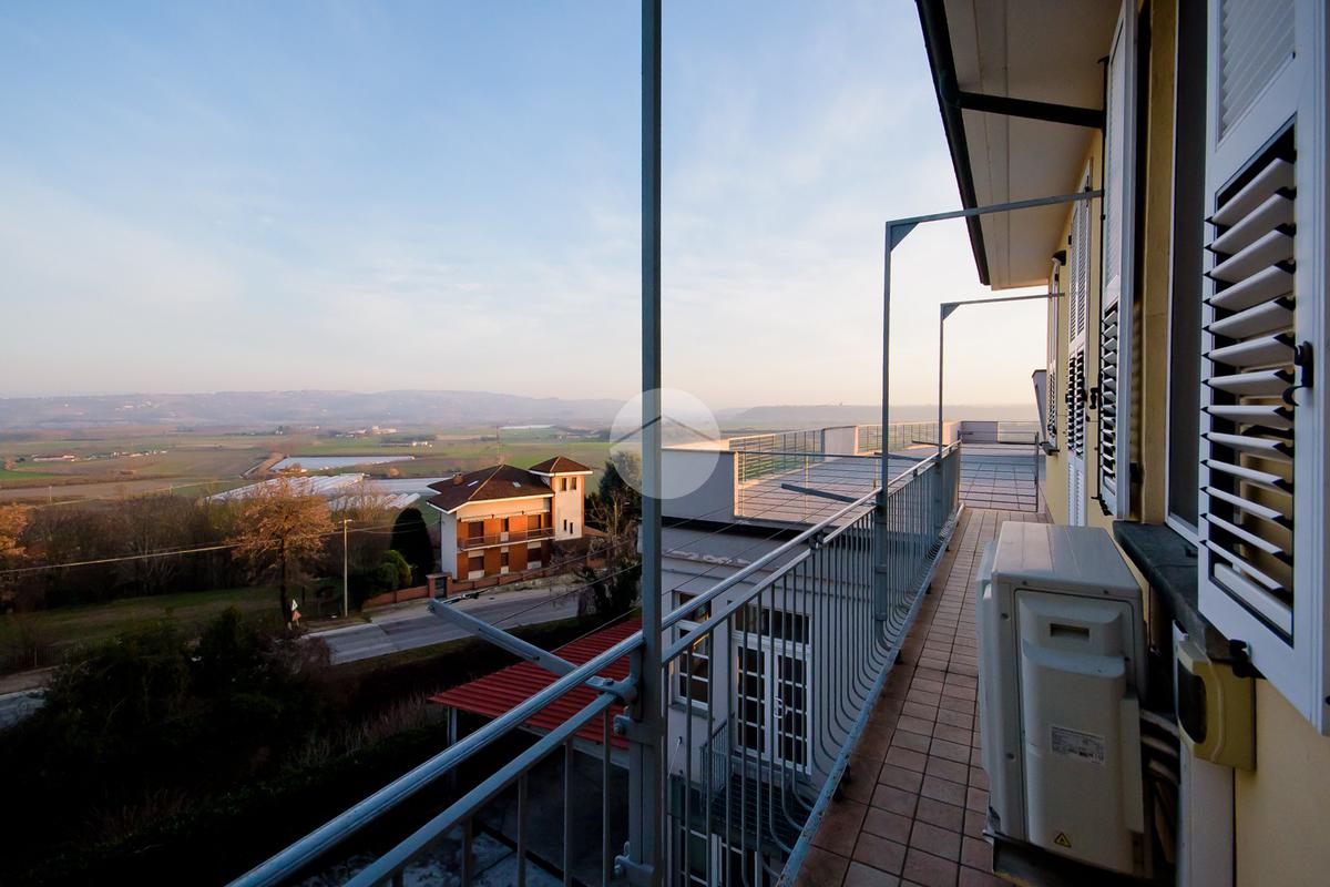 La cucina è abitabile e gode di uscita sul secondo balcone, orientato verso l'interno cortile, che si collega ad uno ampio terrazzo con stupenda vista panoramica sulle Langhe, ideale da sfruttare nella bella stagione.