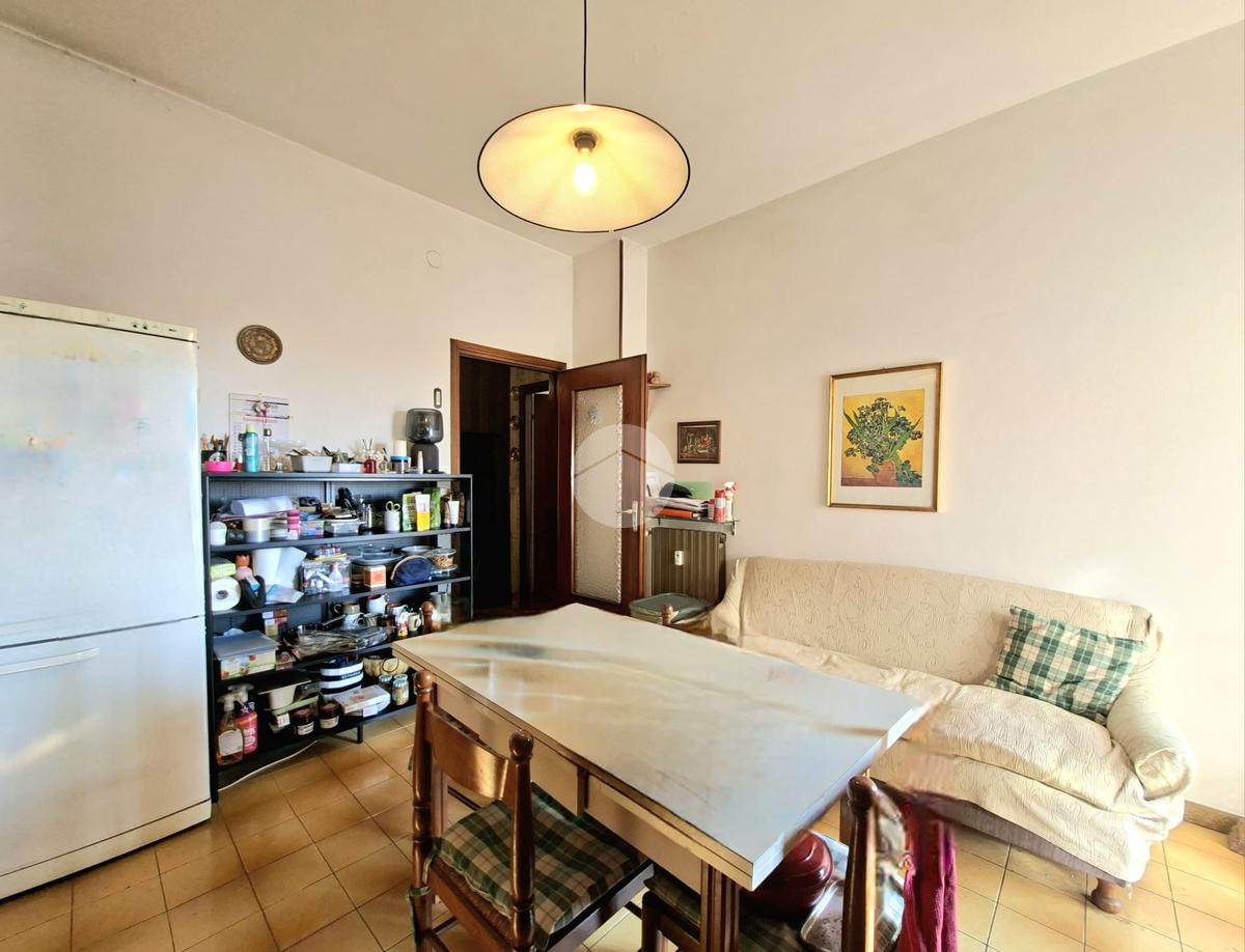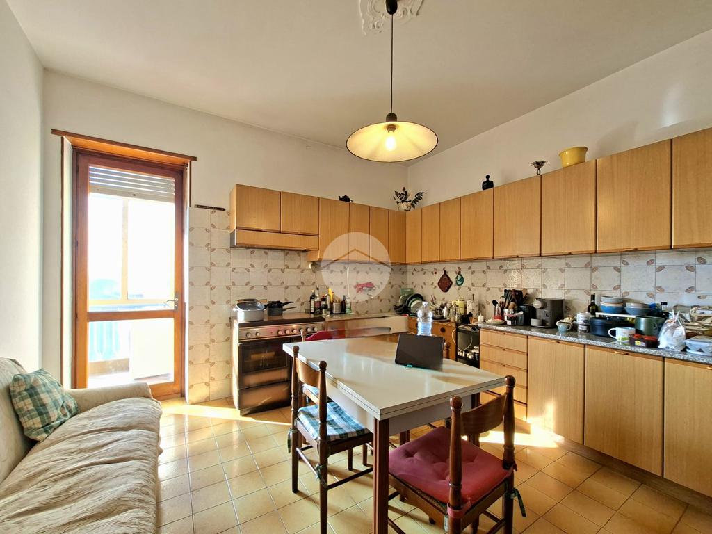 La cucina è abitabile e gode di sfogo sul primo balcone, orientato verso l'interno cortile.